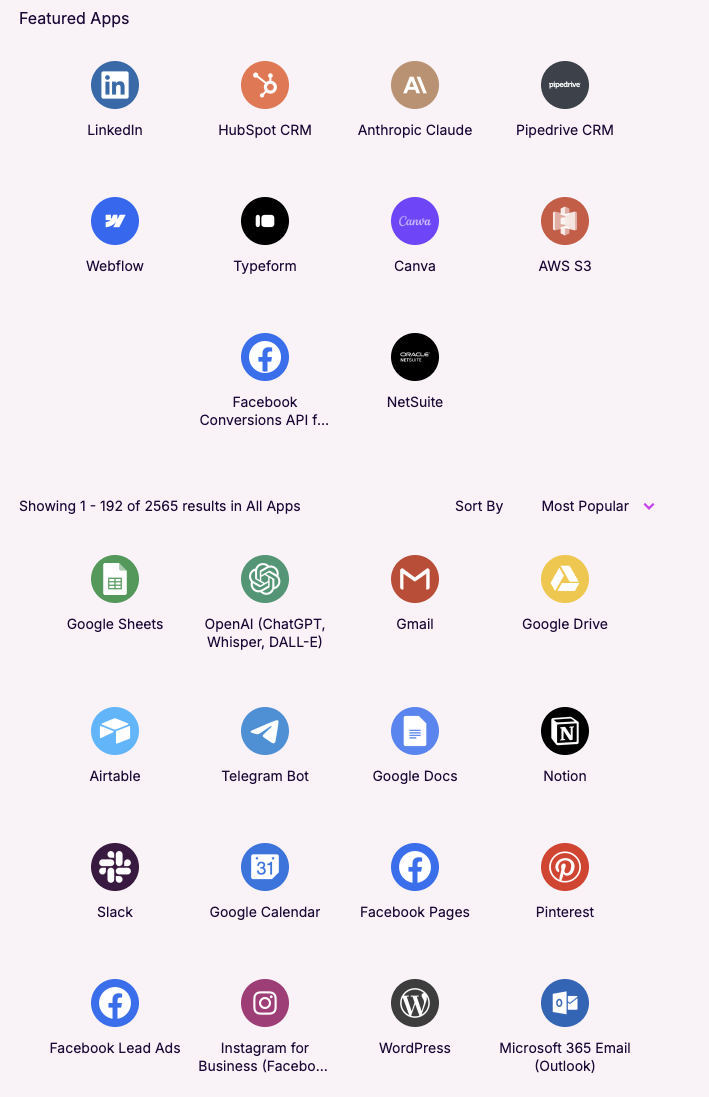 - 수십 개 앱과 통합: 구글 워크스페이스, 슬랙, 노션, 워드프레스, 에어테이블 등 인기 앱 지원