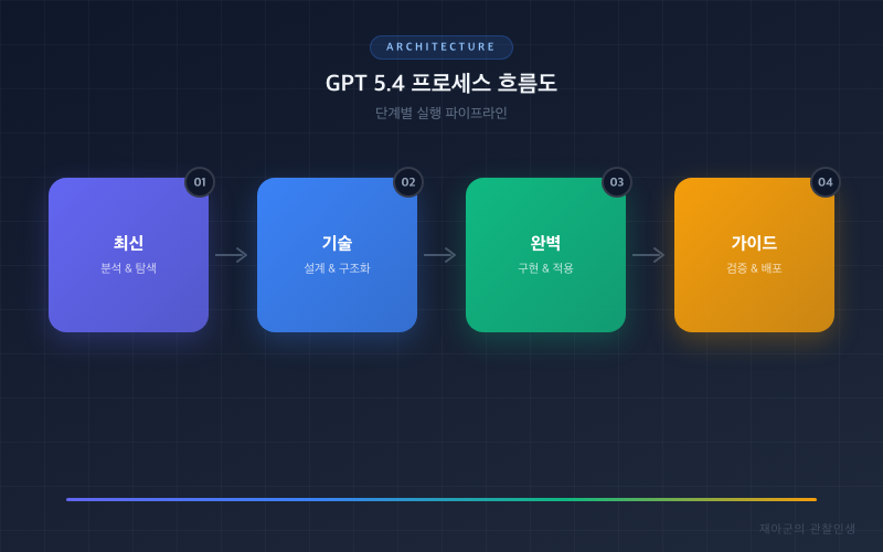 GPT 5.4을(를) 학습하면서 그 안에 녹아 있는 설계 철학과 아키텍처 패턴을 함께 습득하시길 권합니다.