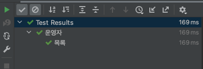 테스트케이스를 실행해보면 @DisplayName 대로 출력되는 것을 확인할 수 있습니다.