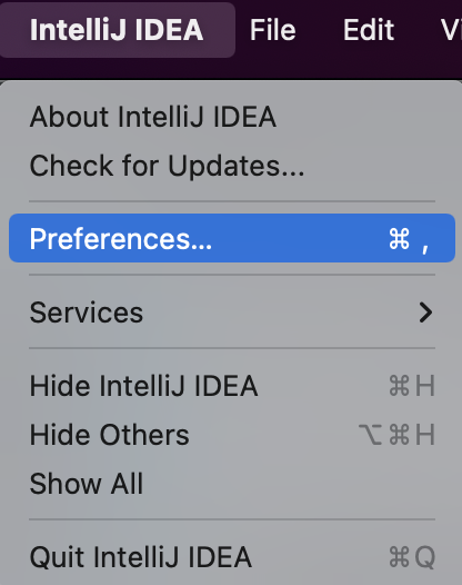 IntelliJ IDEA > Preferences..를 선택합니다.