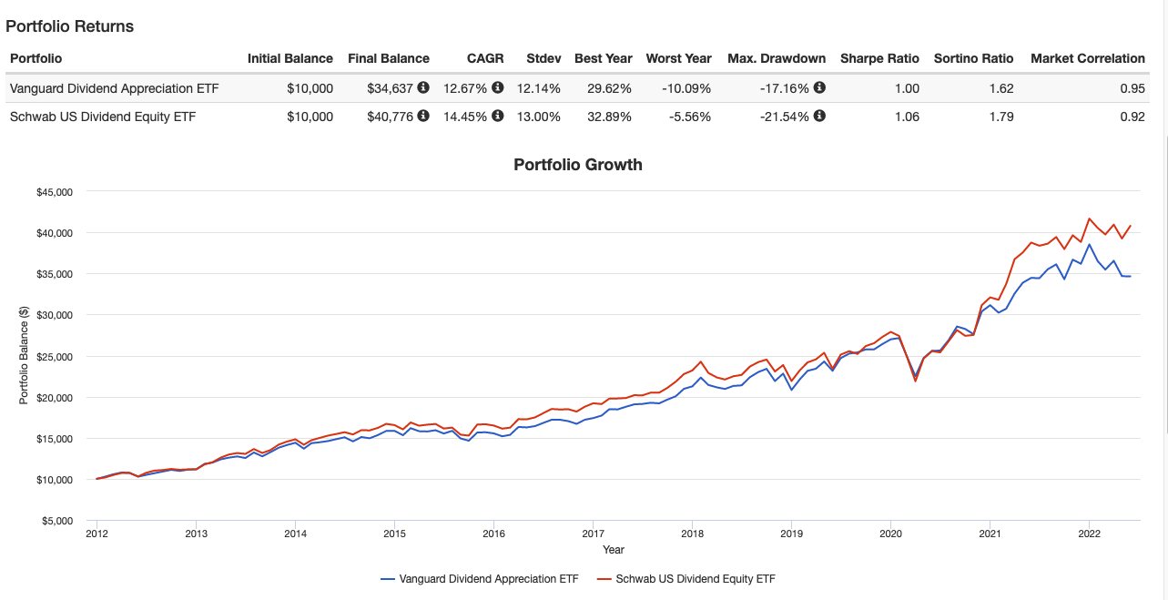 SCHD 가 2011년부터 출시된 ETF이기 때문에 2011년부터 2022년 5월까지의 데이터 백테스트를 살펴보겠습니다.